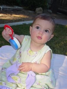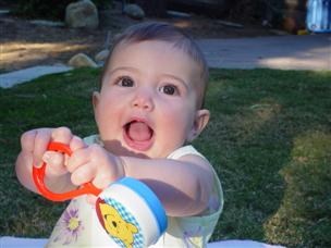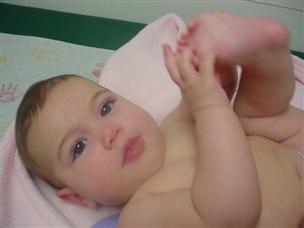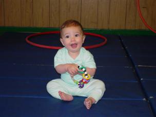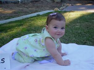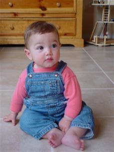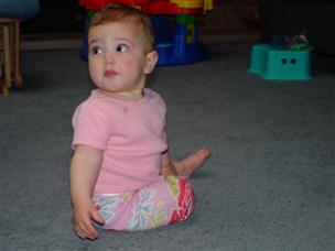 | Daddy thinks I look the cutest in this one. | I wasn't crawling yet, but I could sit really well. | |