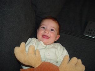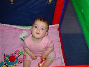 Here's a movie of me when I was 6 months old! (25 sec.) Sometimes I like to eat duck in the bath. (12 sec.) After the bath, I'm usually very calm. (6 sec.) I got to play in my room with my sister! (17 sec.) A dog? Oooh, that looks like fun! (6 sec.) That moose is so funny, he always makes me laugh! (17 sec.) Here's a movie from when I was almost crawling! (29 sec.) My sister took me on the slide at the playground. (11 sec.) This is what I look like in a swing. (5 sec.) And finally, a crawling movie! (33 sec.) Here's an even better one...I got the toy! (17 sec.) And one more to finish it off..."yay", she says! (9 sec.) |