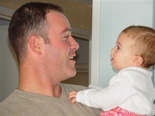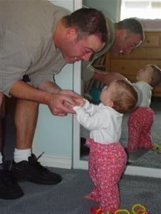| Hi, Daddy! You're tall! | Maybe I can stand up there too? | |