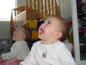 | Who's that baby in the mirror? | I don't care, as long as I can chew on these things. | |