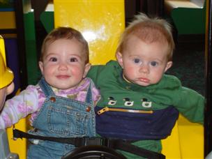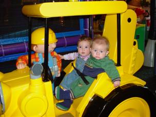 | At Chuck E. Cheese, I rode this contraption. | Joey and I got to sit in it together. | |
