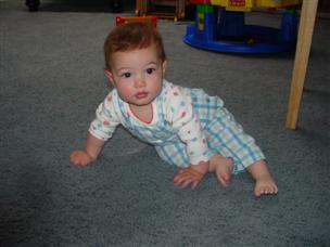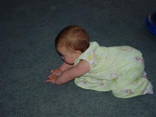 | Pretty cute, eh? | Yes, not crawling...but close! | |