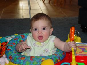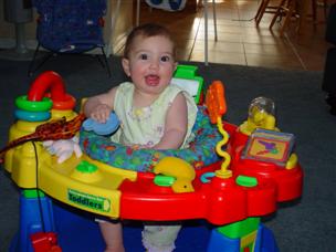 | One last shot with Mommy! | This is my exersaucer. I can stand in it for an hour! | |