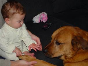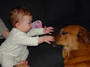 | Ah, another "soft" hug. | Ooh, the dog! Hi, Peanut! | |
