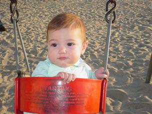 | Daddy held me at the playground... | ...and then put me in the swing! | |