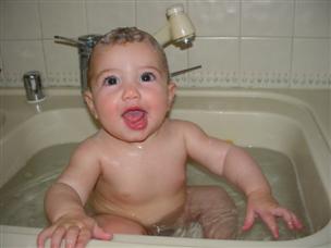 | It was really funny! | Here's another sink bath! | |