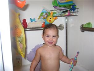 Time for a bath! I really like brushing my teeth. |