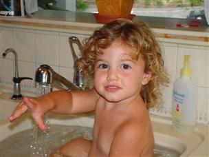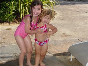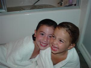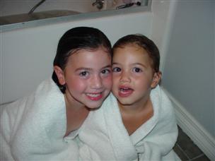 | After lunch, the girls took a bath. | Can you tell we love each other? |