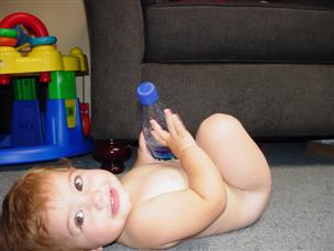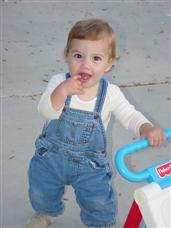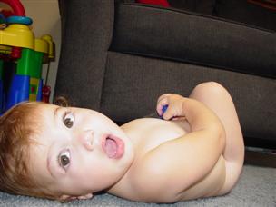 Here's a movie from when I was just thinking about walking! (9 sec.) Now I'm warming up...using my walker. (10 sec.) Alex and I played in the pool together. (12 sec.) Now it's June 25, and you can see I'm taking steps. (11 sec.) Here's another quick walk/fall movie the next day. (7 sec.) I walk to Momma...and say "Mama"! (3 sec.) Here's the best walk movie up to this point. (20 sec.) Sometimes when I walk, I fall and hit my head. (9 sec.) Looking at my reflection in the car makes me talk! (20 sec.) I'm just going to clean this entire drawer out. (21 sec.) I can stick out my tongue! (20 sec.) |
