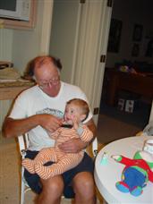 | Alex held her while I clapped. | Here we are with GG on the couch! | |