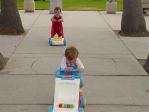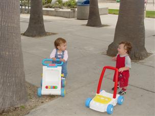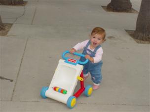 | I'm getting closer to walking...this walker is a big help. | The other kids want to use it....and I share pretty well. | |
