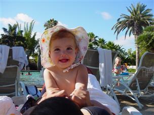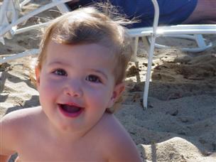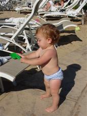 | Now we're at the big pool, and I played in the sand! | I put lots of sand on this beach chair... | |