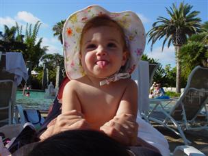 | Sticking my tongue out at Daddy... | ...and finally, a clear shot of me in the hat! | |