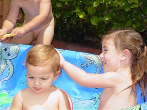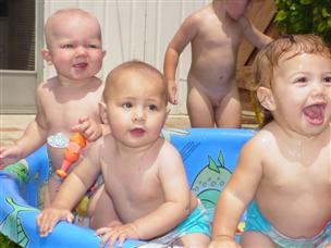 | ...and then we went into the pool! | I like to jump around on the sides... | |