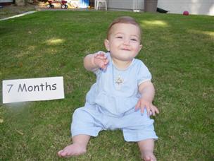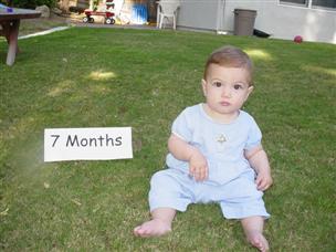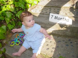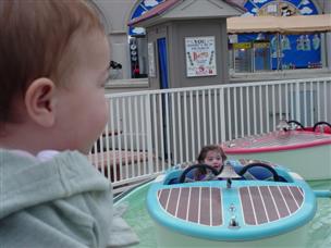 | OK, last 7 month shot and then let's move on. | I watched my sister ride the boats at the park... |