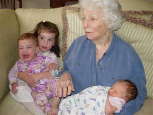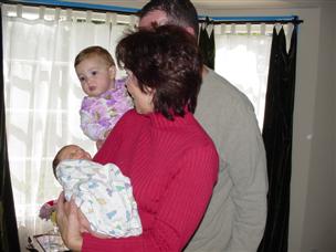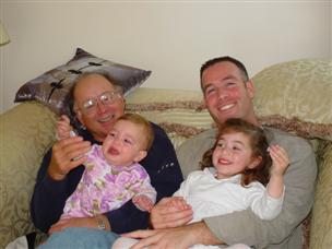 | There's Grandma, holding Cadence. | And here's Daddy and Grandpa with the girls. |