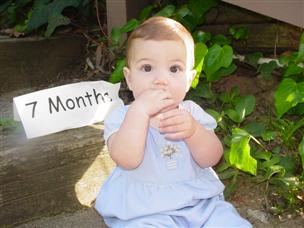 | Let's start with the 7 month pictures! | Mommy, you're funny with that camera! |