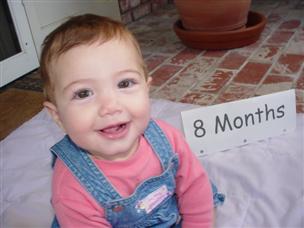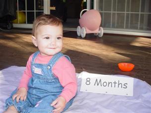| I'm about to eat my 8-month sign as well. | Mommy put me in this outfit... |