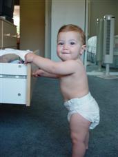 | ...and I like to give her a knowing glance. | I can pull myself up and stand! |