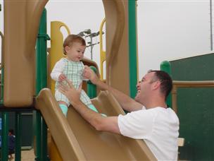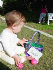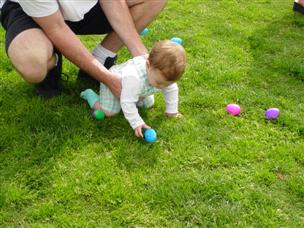 | On Saturday, Daddy took me down the slide... | ...as Alex got ready to find some eggs. |