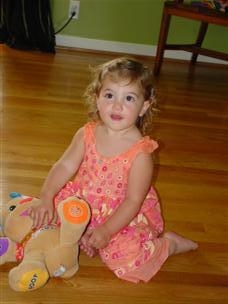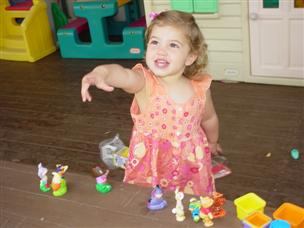 Charlie tries to do the ballet moves she just saw Alex do. (9 sec.) Reading her favorite book at her desk! (12 sec.) She can now successfully sort colors! (34 sec.) Charlie can turn the lights on and off in her room. (19 sec.) She can also play with her magna-doodle. (30 sec.) Mommy...milk! (7 sec.) She's a cowgirl (who needs her cup to ride). (35 sec.) Here's a new word: "Circle" (11 sec.) Charlie likes to run in circles...a lot. (19 sec.) She also likes jumping in the jumpy-thing. (8 sec.) Beware of the swing monster! (18 sec.) The swing monster (Daddy) is out again! (15 sec.) We'll finish with a dual-peeing movie. (16 sec.) |
