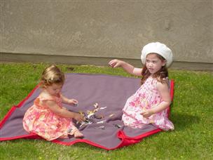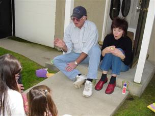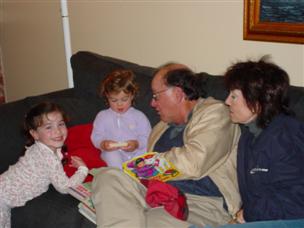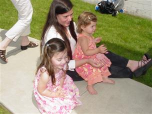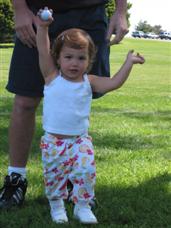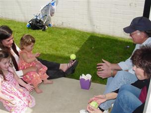 | Mommy sat with us on the sidewalk... | ...and we played catch with Grandma and Grandpa! |