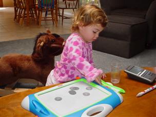 | OK, enough with the horse, time for the magna-doodle. | I'm getting pretty good at it. (Watch!) |
