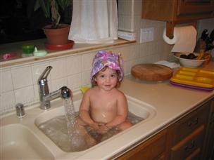 | Ah, the swing...another thing I could do all day. | Time for a bath! |