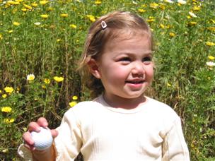 | Back at home...I can do this whole puzzle! (Watch!) | Ah, flowers and golf balls...perfect! |