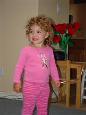 Charlie and Daddy squirm on the couch! (5 sec.) Charlie and Alex say hi to Daddy on the swing! (7 sec.) Playing with her sand and bucket at the pool. (15 sec.) Playing the "piano"! (16 sec.) Now the girls play and dance with the piano. (16 sec.) Playing with the big girls at Alex's birthday. (21 sec.) Experiments with play-do. (21 sec.) Showing off her knowledge of the princesses. (45 sec.) |