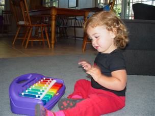 | Check out this action shot. | I love playing by myself (Mommy has to watch closely). |
