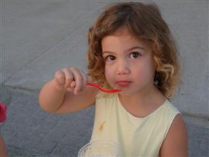 | Alex and I support Daddy's habit. | That evening, we went for ice cream by the beach! |