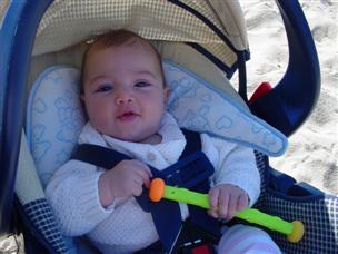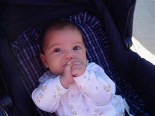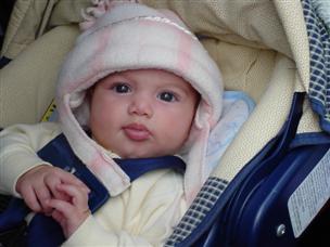 | This is me in the car seat with a hat on. | This is too (but here, I'm being pensive...note the hands). | |