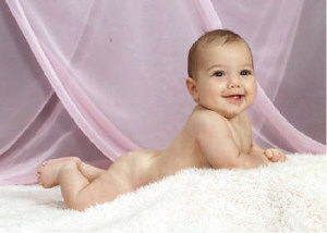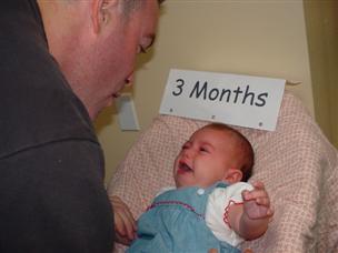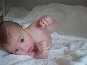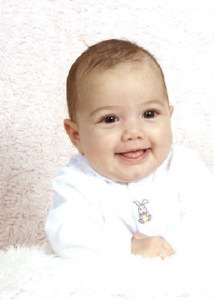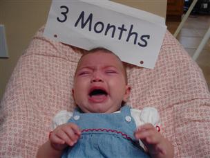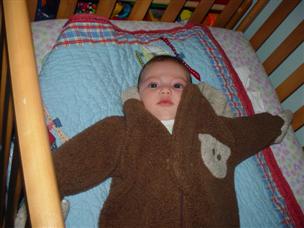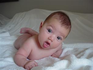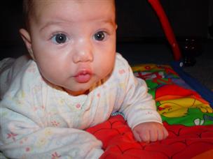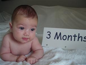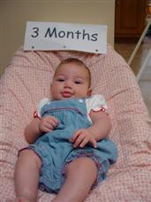 | Can you guess how old I am? | Mommy dressed me up for my 3 month pictures. | |