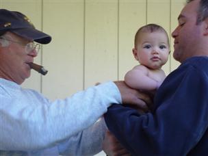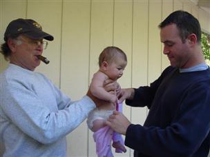 | Grandpa, I don't think that's the way to do it. | Oh, well...just more time for me to be a good baby. | |