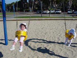 | Alex and I like to wear the same clothes sometimes. | Look at me in the swing! | |