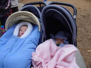 | Now we're up in Sonoma for Thanksgiving (with Nina)! | I had to wear this thing to stay warm. (That's Orion too!) | |