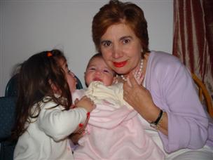 | Although in this picture, we're not too sure. | Now Grandpa and Daddy are trying to dress me... | |