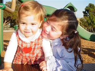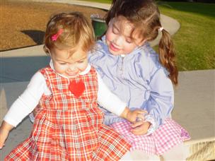 | How's this, Moommy? | Ooh, that's a little hard, big sister. |