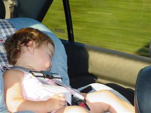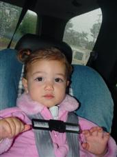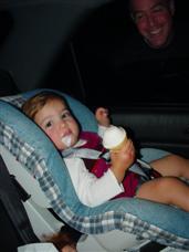 | Despite THIS face, I love the car seat, too. | Look, my first taste of ice cream! YUM! |