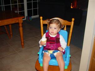 | It got a little messy. | Daddy let me hold the ice cream and watch Elmo. |