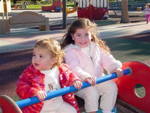 | And now we're back at the playground...sliding... | ...teeter tottering...(Is that a swing over there?) |
