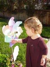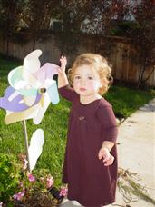| Now I'm playing out in the front yard. | I always go touch this pinwheel next door. |