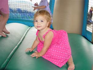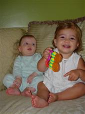 | I can drink milk just like my sister now! | I'm getting big enough to play in bouncy things now. |