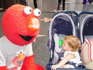 | I stayed overnight, and the next morning, I played! | Oh, wow -- my favorite: it's ELMO! |
