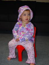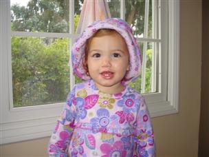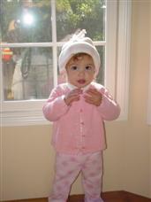 | I wonder how I can get back outside? | Mommy's going to dress me up first. |