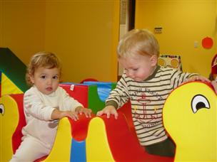 | Here I am at playgroup... | ...and now, Daddy is playing with me on the carpet. |