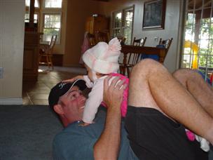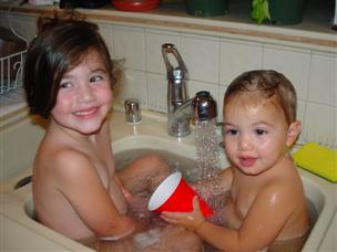 | When Daddy does this, I say "aaaaaaa". | I love it when Alex takes a bath with me! |