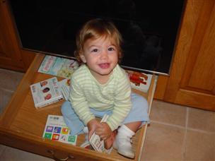 | I'm sitting in the book drawer again (at least once a day). | Ah, my favorite thing to do: read! |