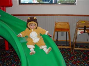 | Oh, and go on slides (even dressed as a lion). | Daddy put me on his shoulders so I could see... |